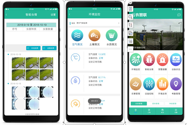 軟件部分,軟件分成云端web版和手機(jī)app版。軟件語言采用java與.net技術(shù)結(jié)合。系統(tǒng)構(gòu)架采用云服務(wù)構(gòu)架。包括:1、蟲害情況自動采集軟件和APP;2、農(nóng)業(yè)環(huán)境氣象數(shù)據(jù)監(jiān)測系統(tǒng)及APP;3、農(nóng)業(yè)生態(tài)環(huán)境在線監(jiān)測存儲系統(tǒng)軟件;4、孢子智能拍照統(tǒng)計監(jiān)管系統(tǒng);5、蟲害性誘監(jiān)測系統(tǒng);6、土壤肥力實(shí)時在線監(jiān)測系統(tǒng)。